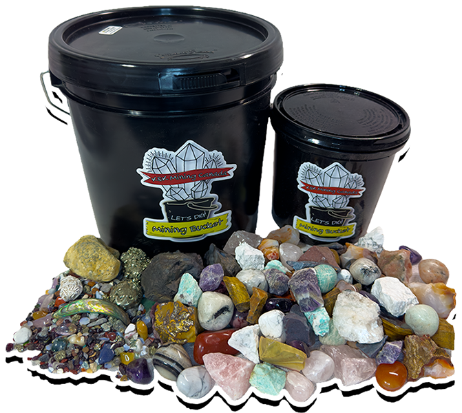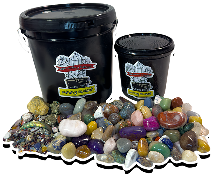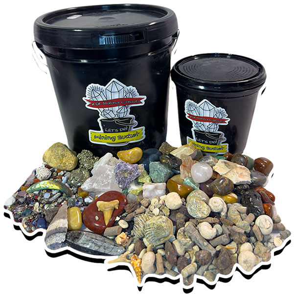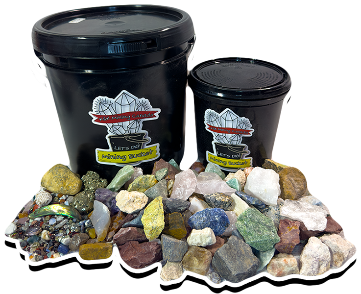 We aim to include a Break-Your-Own Geode, Pyrite, Desert Rose & Abalone Shell Pieces in every bucket!