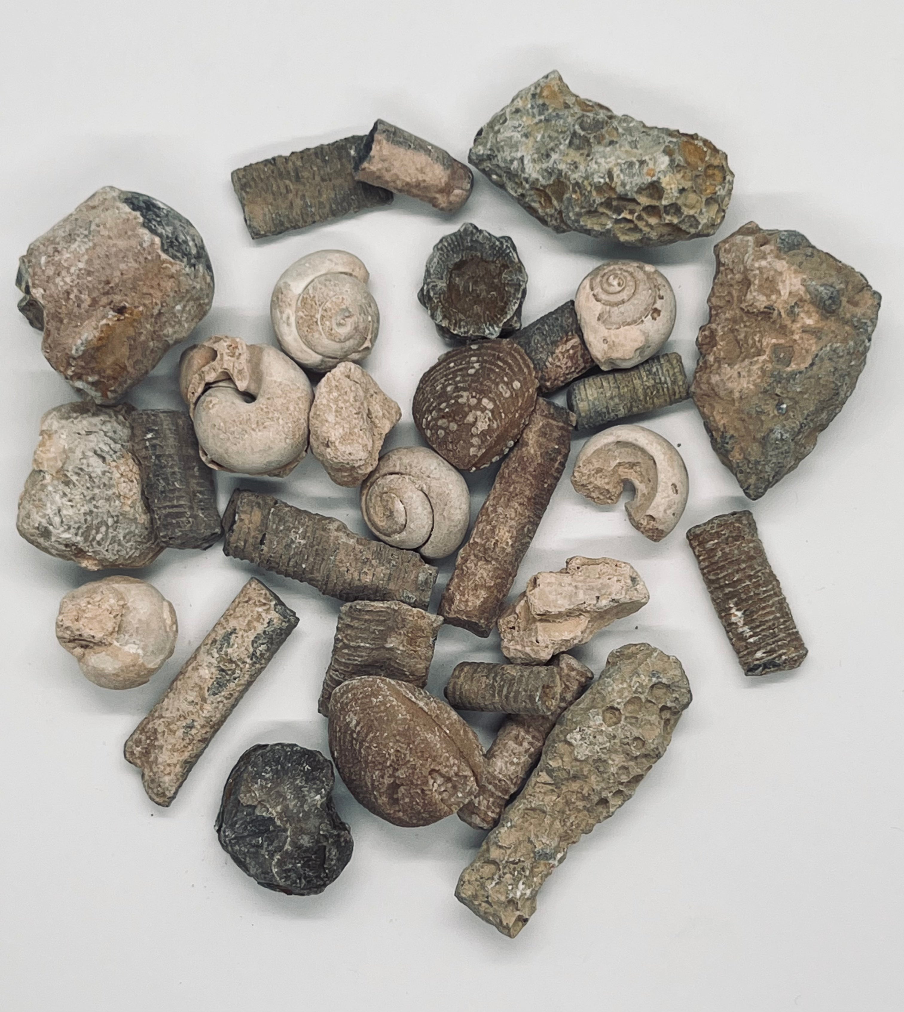 Inside, you’ll find real fossils like Orthoceras, Trilobites, Shark Teeth, and a mix of mini fossil surprises.